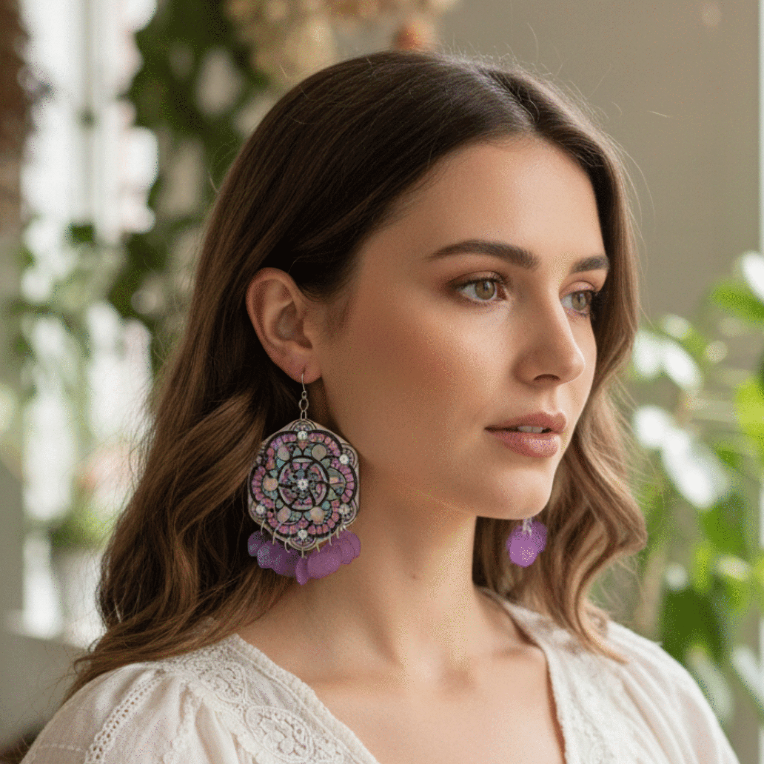 Make a bold statement with our Geometric Mandala Statement Earrings, where traditional mandala artistry meets contemporary geometric design. These eye-catching earrings feature vibrant multi-colored patterns that celebrate the beauty of sacred geometry while maintaining modern appeal. Each piece is carefully crafted using high-quality materials with precise printing techniques that ensure long-lasting color vibrancy. The lightweight construction makes them comfortable for extended wear, while the bold designs add instant personality to any outfit. Perfect for fashion-forward individuals who appreciate unique accessories, these earrings effortlessly transition from casual day looks to evening glamour. The diverse color palette ensures versatility with various wardrobe choices.