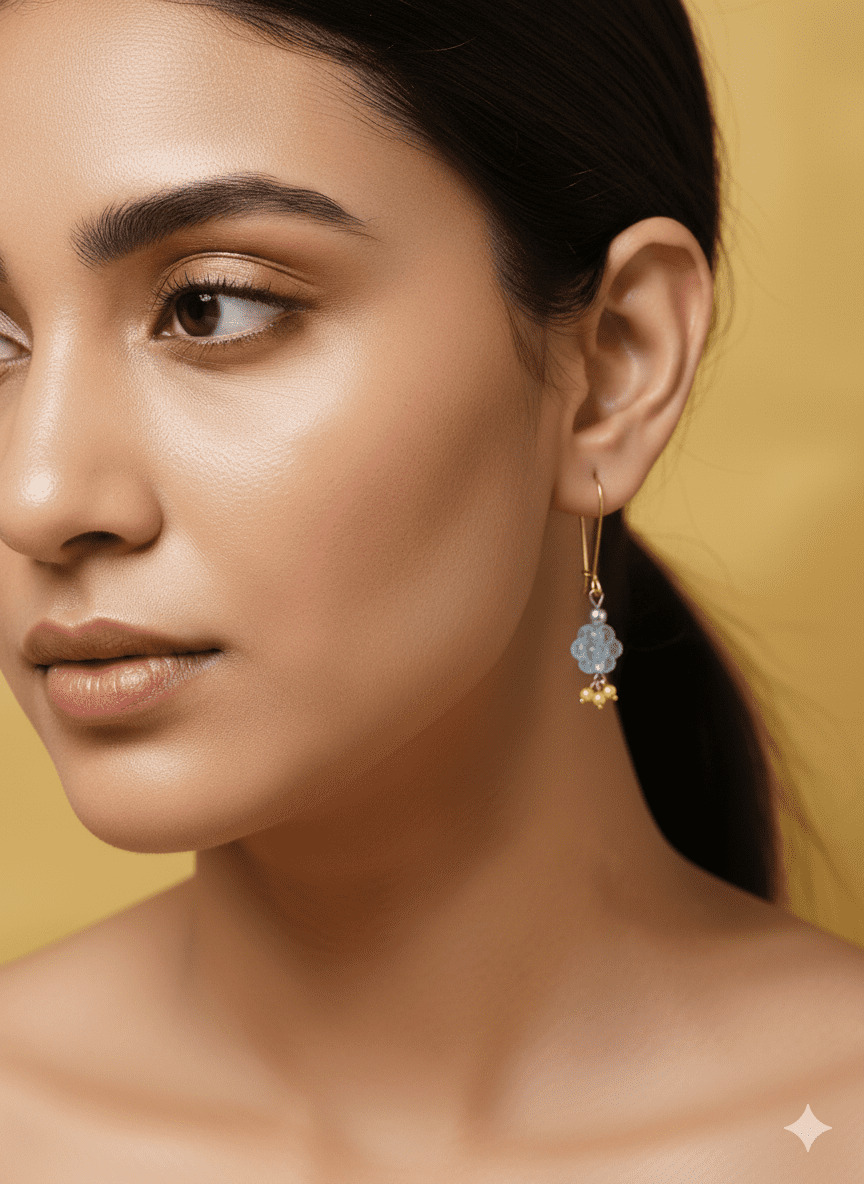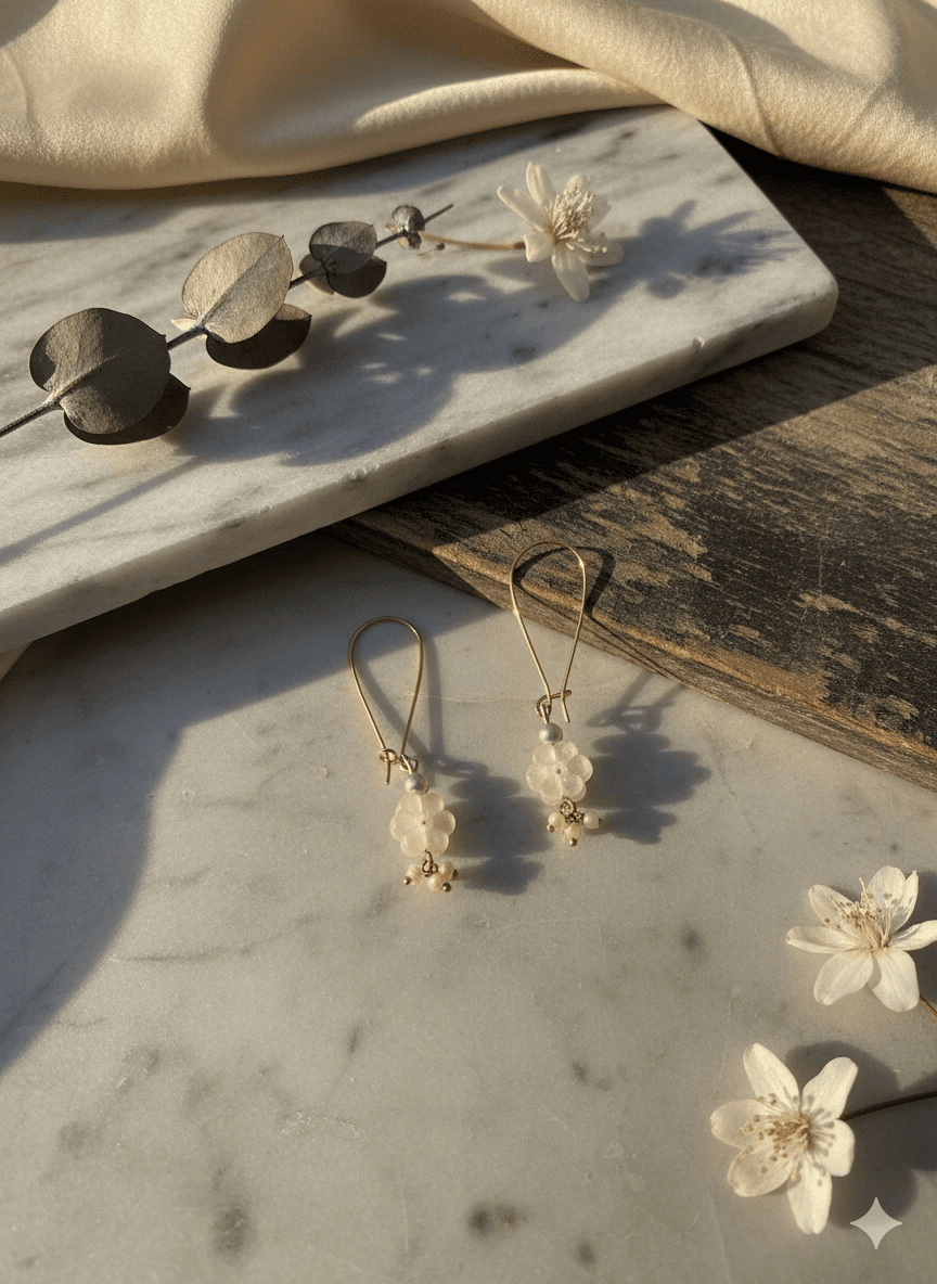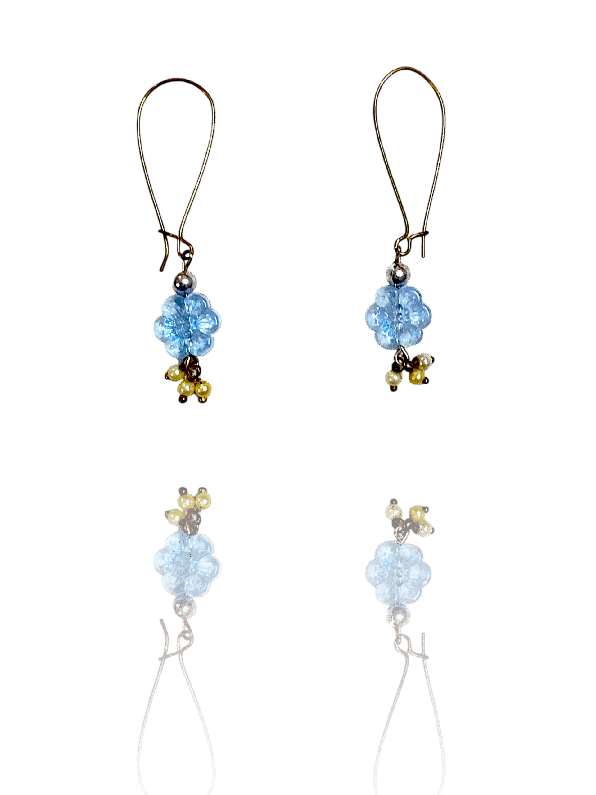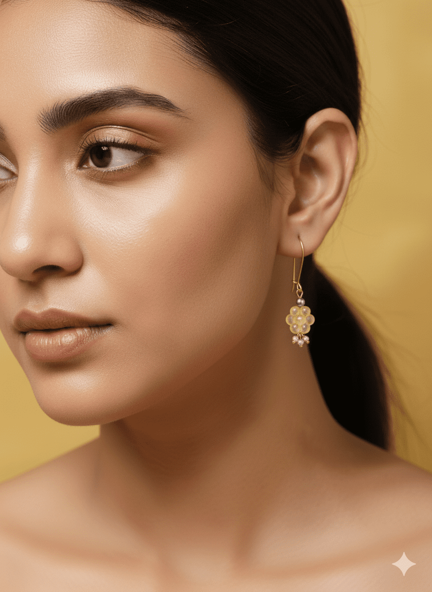 Add a touch of artisan elegance to your jewelry collection with these stunning handcrafted glass floral drop earrings. Each pair features intricately carved glass flower beads that capture and reflect light beautifully, creating subtle sparkle with every movement.