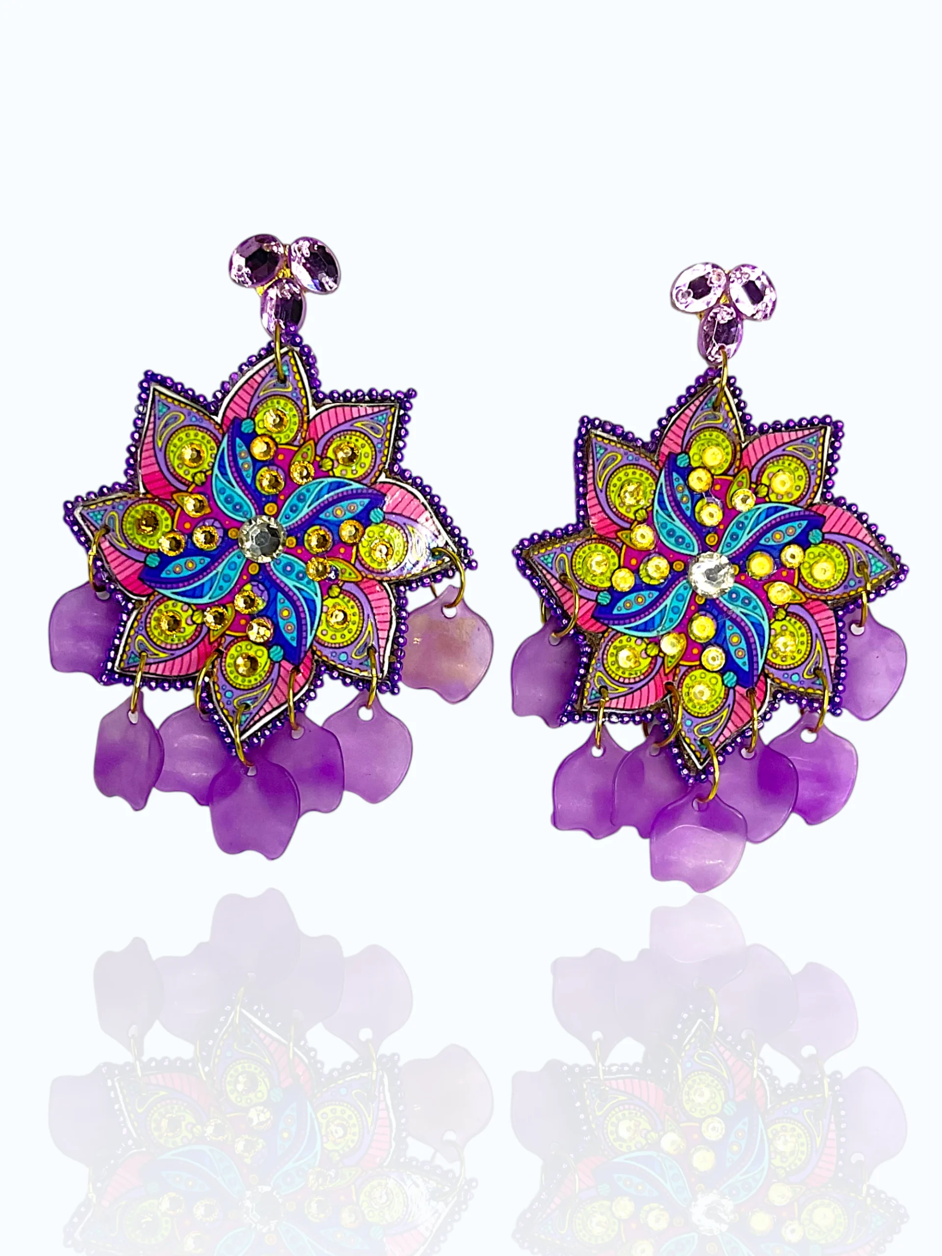 Introducing the Liora Earrings – where artistry meets elegance. These stunning handcrafted statement earrings feature an intricate floral mandala design that captures attention from every angle.